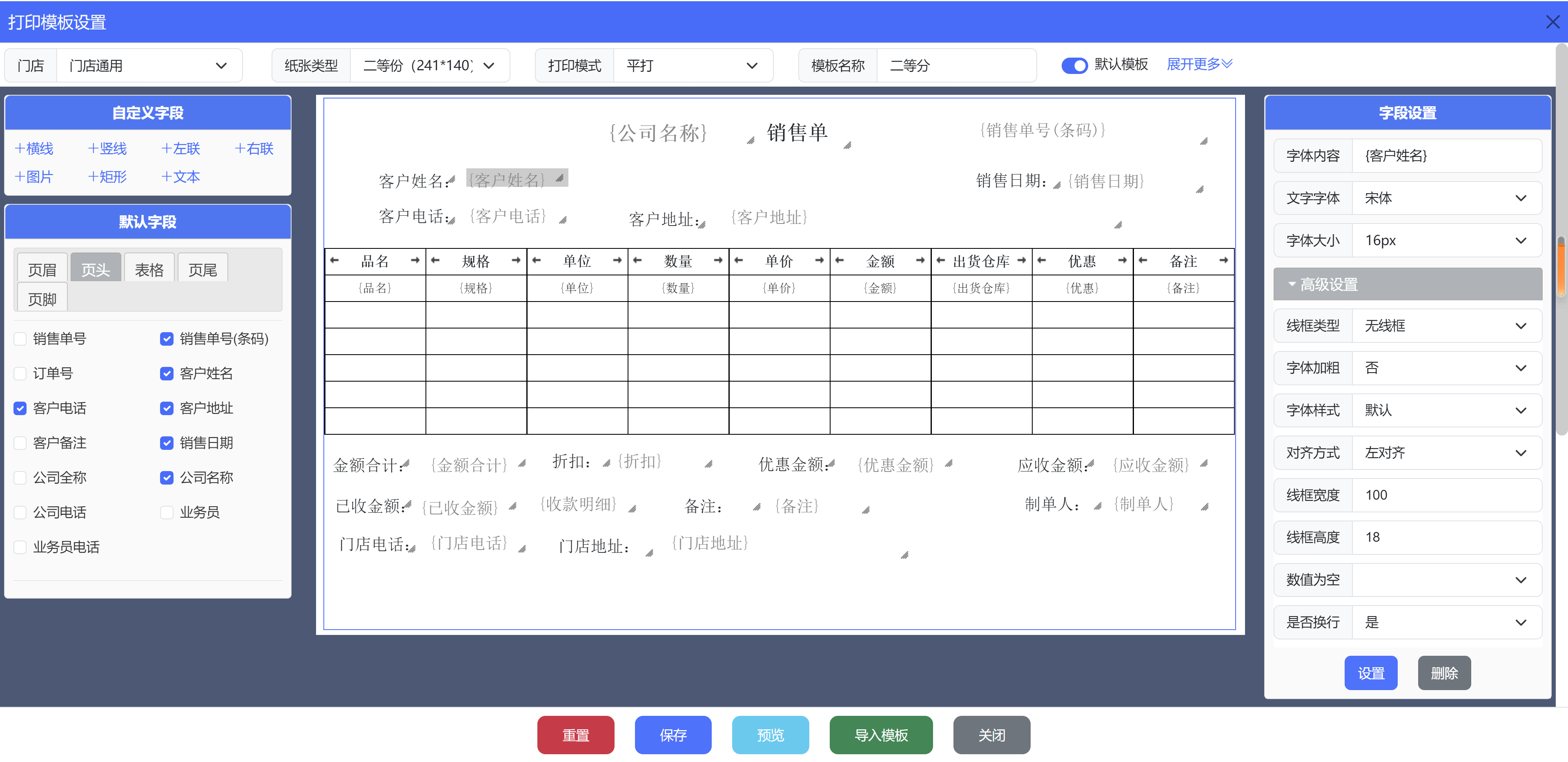 打印模板设计